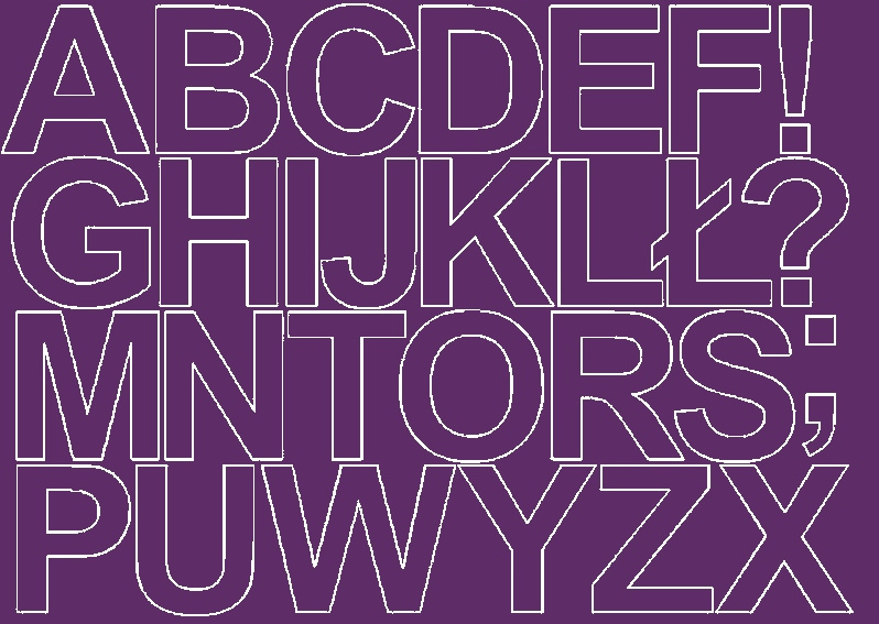 - Ilość: 1 arkusz (25 litery oraz 3 znaki specjalne)
