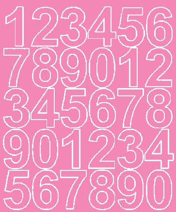 ⭐ Wysokość znaków, wynosząca 4,5 cm, sprawia, że doskonale nadają się do wykonywania napisów praktycznie na każdym zwartym podłożu. Produkt odporny na światło słoneczne i działanie wody. Cyfry wycinane ploterowo po obrysie (bez tła). Ilość cyfr jak na zdjęciu głównym.
