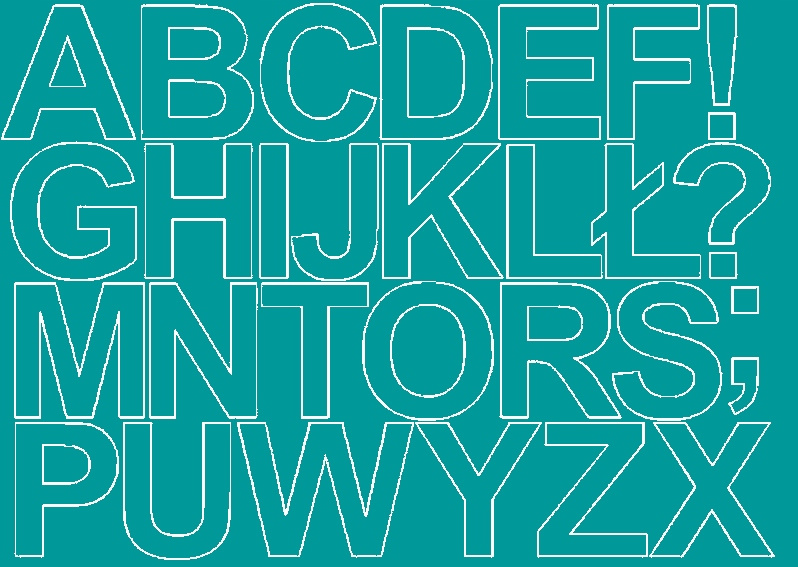 - Ilość: 1 arkusz (25 litery oraz 3 znaki specjalne)