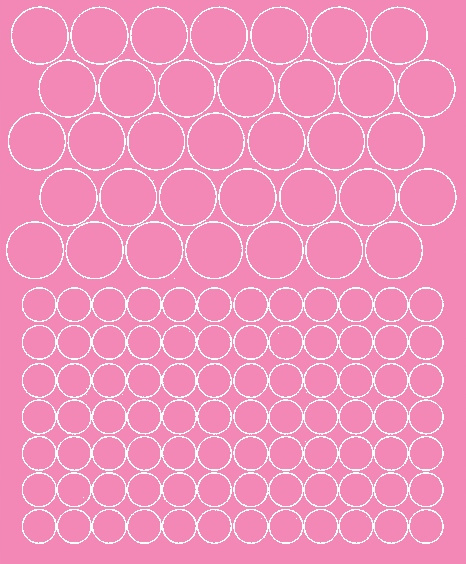 ⭐ Zestawy, sprzedawane w formie arkusza 21X25 cm na arkuszu znajduje się 119 naklejek, produkowane są z folii samoprzylepnej oracal 641. Rozmiar naklejek wynosi 2,5 cm większe (35 szt) oraz 1,5 cm (84 szt) nadają się do naklejenia praktycznie na każdym zwartym podłożu.
