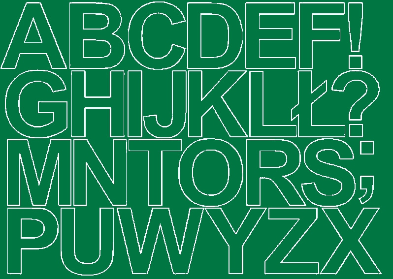 - Ilość: 1 arkusz (25 litery oraz 3 znaki specjalne)