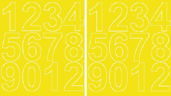 Samoprzylepne naklejki w kształcie cyfr o wysokości 7 cm, wykonane z matowej żółtej folii. Idealne do oznaczania, dekoracji i kreatywnych projektów. Wprowadź kolory i porządek do swojego otoczenia!