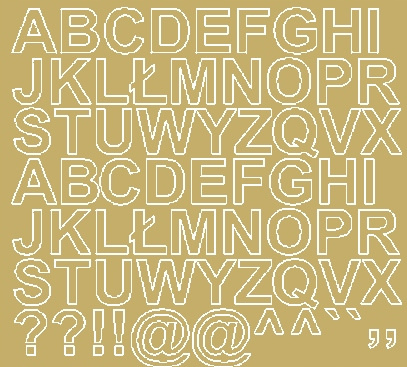 - Ilość: 1 arkusz (54 litery oraz 12 znaków specjalnych)