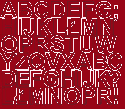 - Ilość: 1 arkusz (45 litery oraz 3 znaki specjalne)