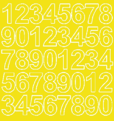 ⭐ Wysokość znaków, wynosząca 3,5 cm, sprawia, że doskonale nadają się do wykonywania napisów praktycznie na każdym zwartym podłożu. Produkt odporny na światło słoneczne i działanie wody. Cyfry wycinane ploterowo po obrysie (bez tła). Ilość cyfr jak na zdjęciu głównym.