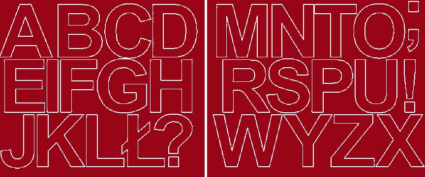 - Ilość: 2 arkusze (25 litery oraz 3 znaki specjalne)