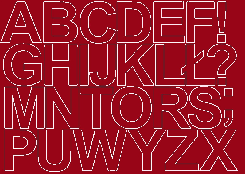 - Ilość: 1 arkusz (25 litery oraz 3 znaki specjalne)