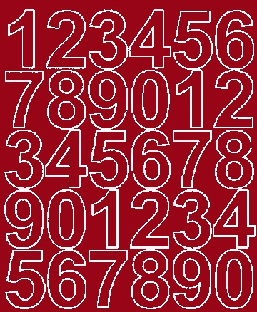 Cyfry samoprzylepne 4.5 cm naklejki z folii ciemno czerwony z połyskiem