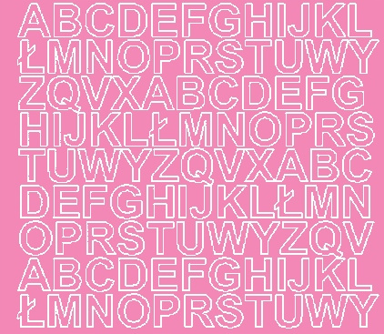 NAKLEJKA LITERY SAMOPRZYLEPNE 2 cm NAKLEJKI Z FOLII RÓŻOWY Z POŁYSKIEM