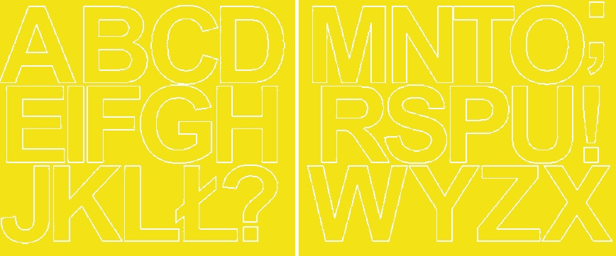 - Ilość: 2 arkusze (25 litery oraz 3 znaki specjalne)