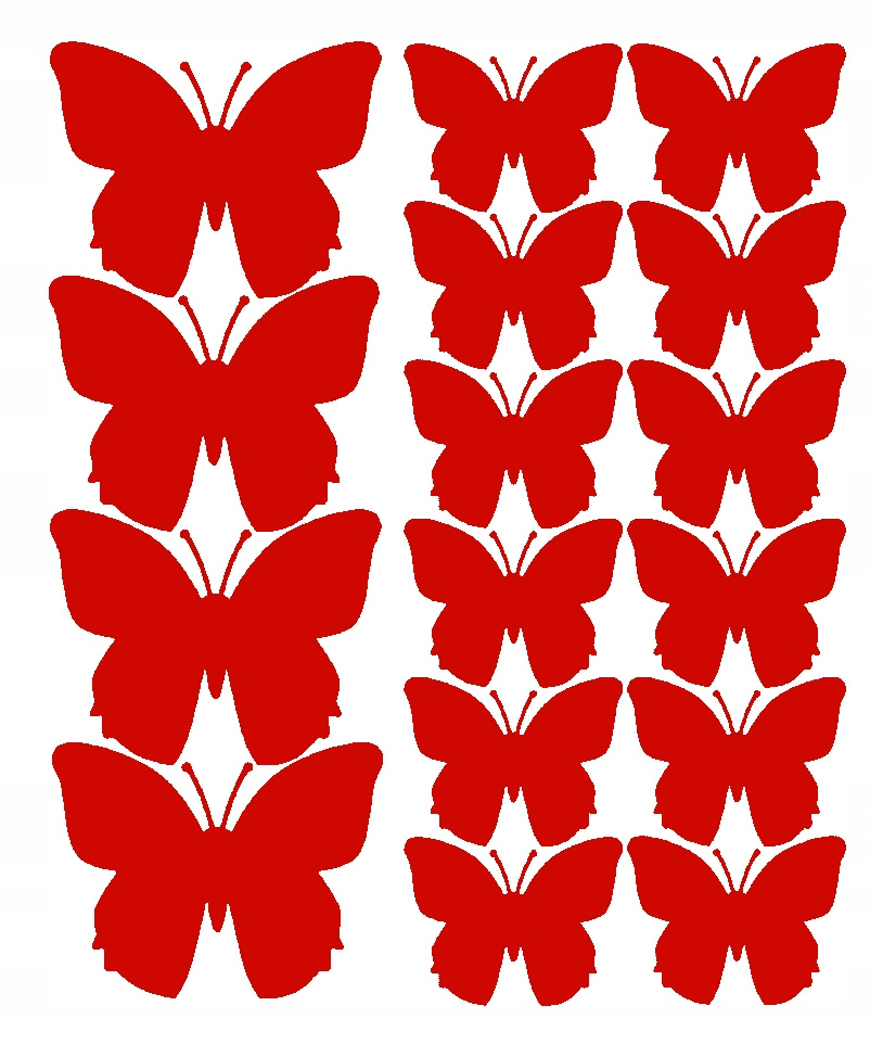 NAKLEJKA NA ŚCIANĘ MOTYLE NAKLEJKI 32 SZT. CZERWONY Z POŁYSKIEM 70 MIKRONÓW