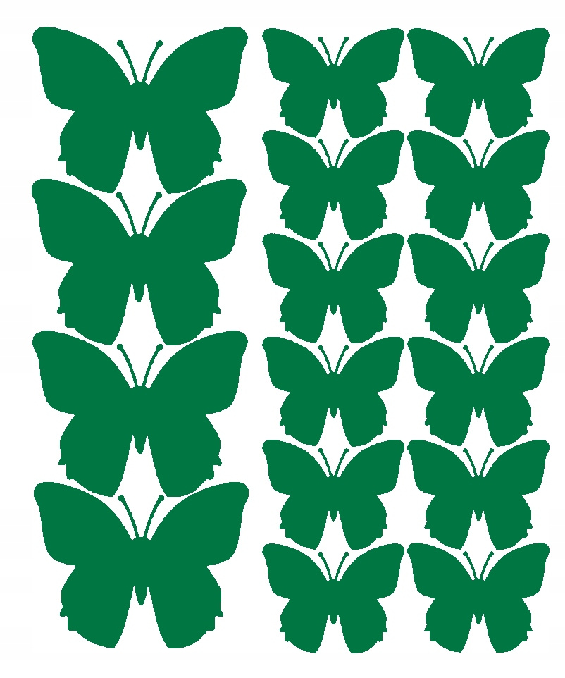 NAKLEJKA NA ŚCIANĘ MOTYLE NAKLEJKI 32 SZTUKI ZIELONY Z POŁYSKIEM 70 MIKRONÓW