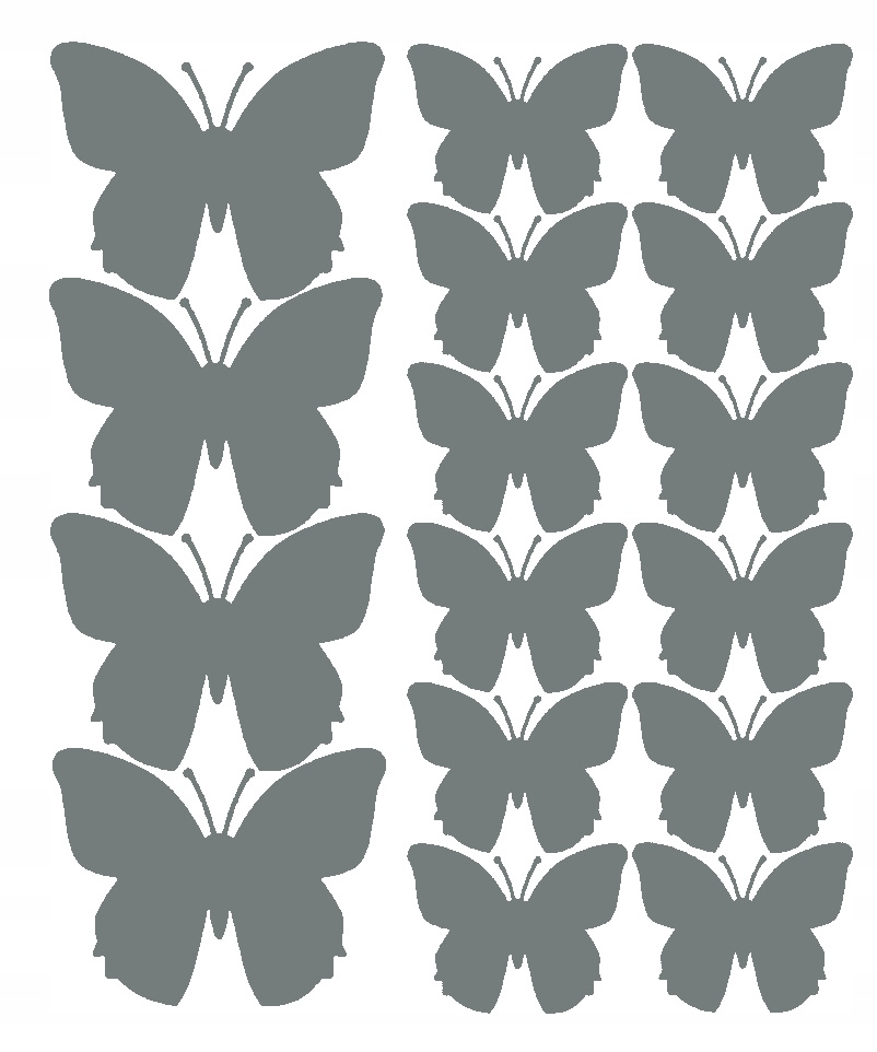 NAKLEJKA NA ŚCIANĘ MOTYLE NAKLEJKI 32 SZTUKI SZARY Z POŁYSKIEM 70 MIKRONÓW