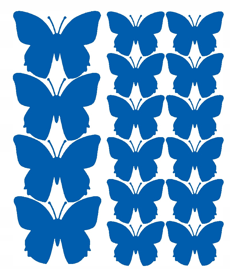 NAKLEJKA NA ŚCIANĘ MOTYLE NAKLEJKI 32 SZTUKI NIEBIESKI MATOWY 70 MIKRONÓW