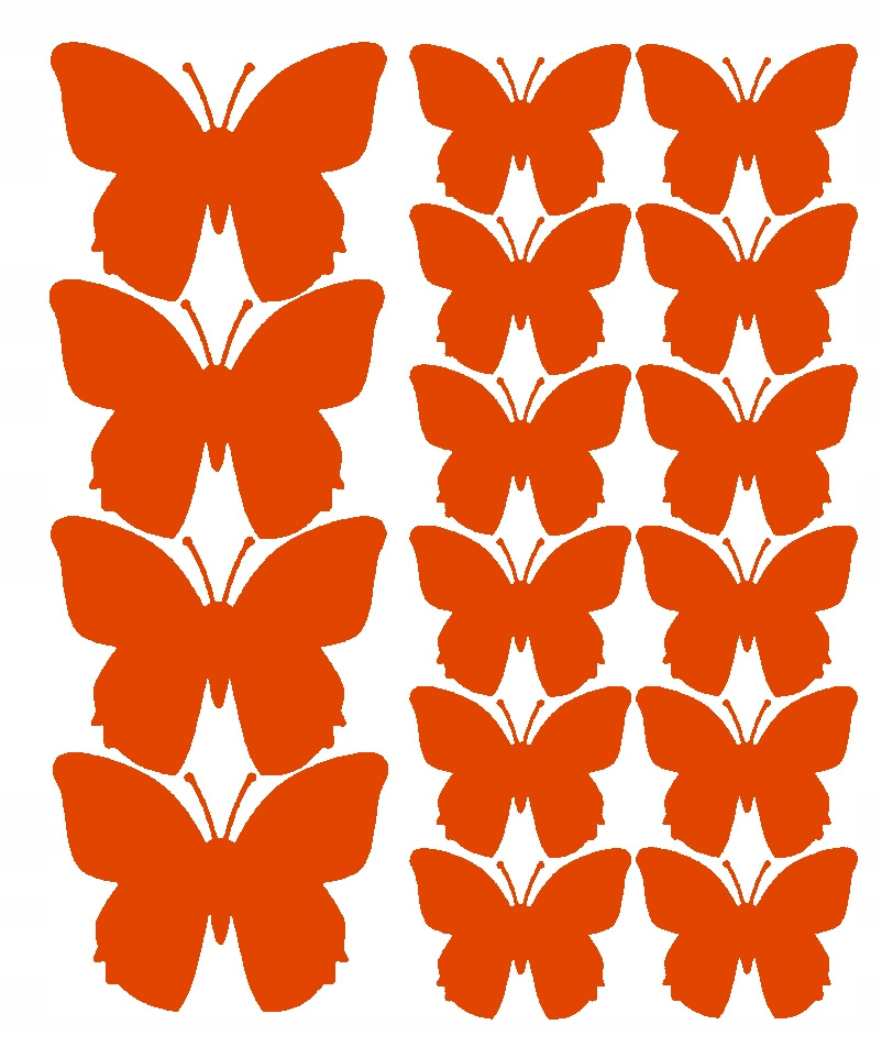 NAKLEJKA NA ŚCIANĘ MOTYLE NAKLEJKI 32 SZTUKI POMARAŃCZOWY Z POŁYSKIEM