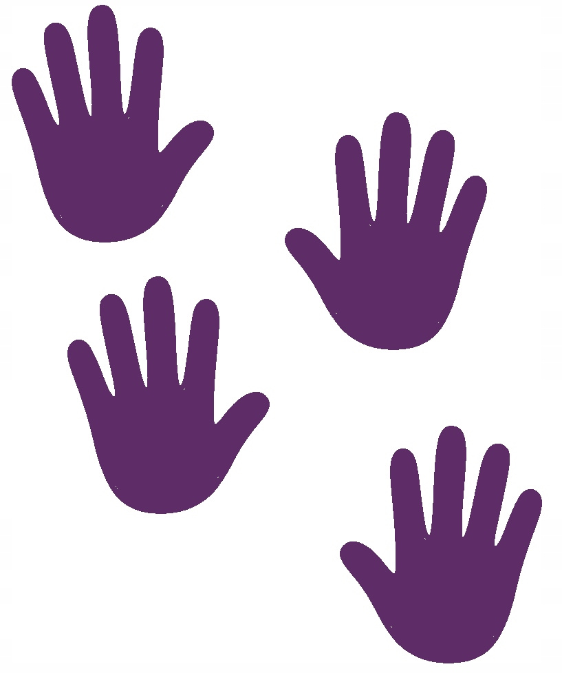 NAKLEJKI DŁONIE 4 szt. ŚCIEŻKA SENSORYCZNA FIOLETOWY MATOWY